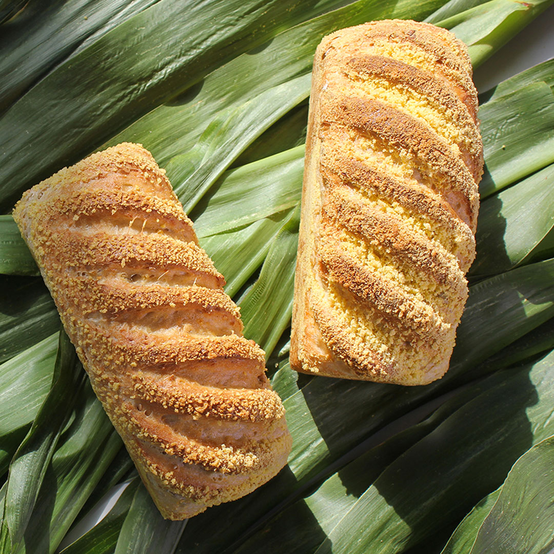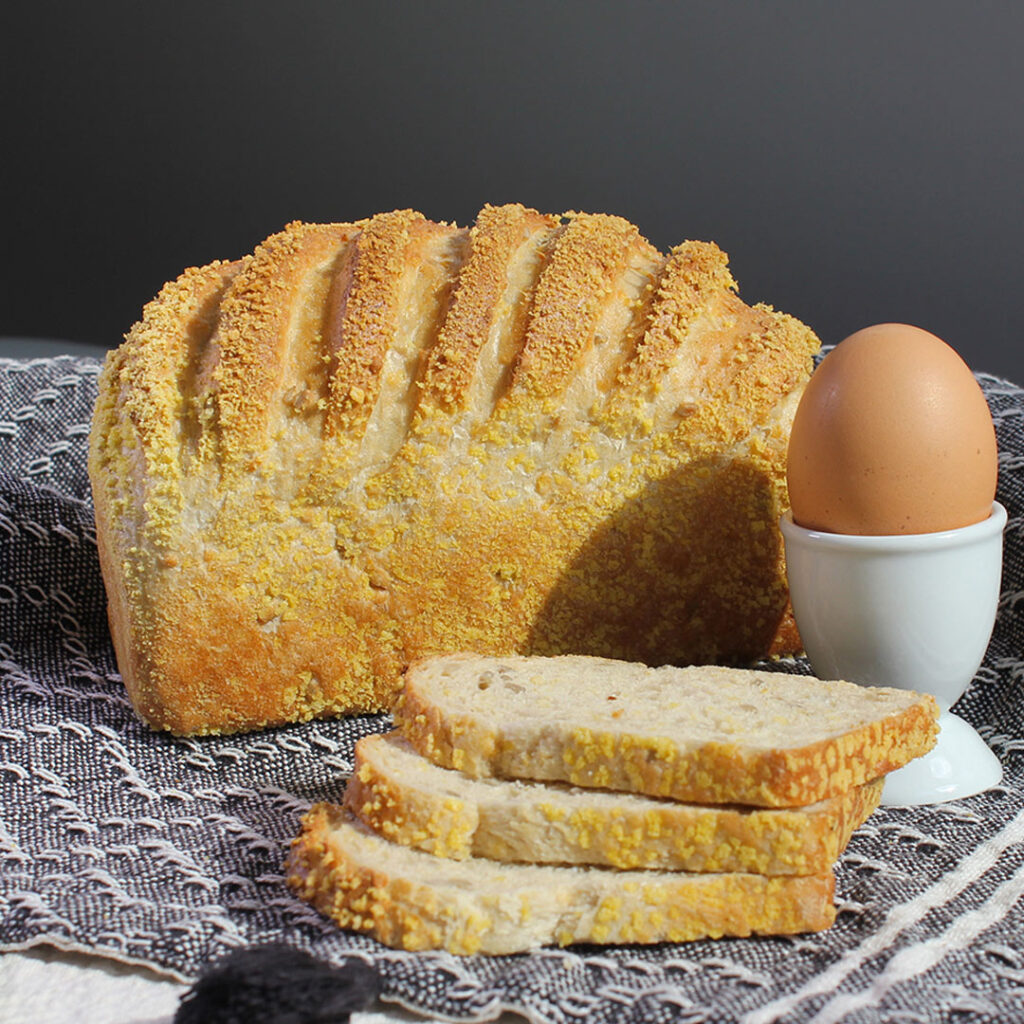 C’est la découverte d’un produit à la texture de pain de mie qui dévoile sous sa croûte granitée, une mie souple et moelleuse au bon goût de maïs, et aux arômes subtilement épicés.