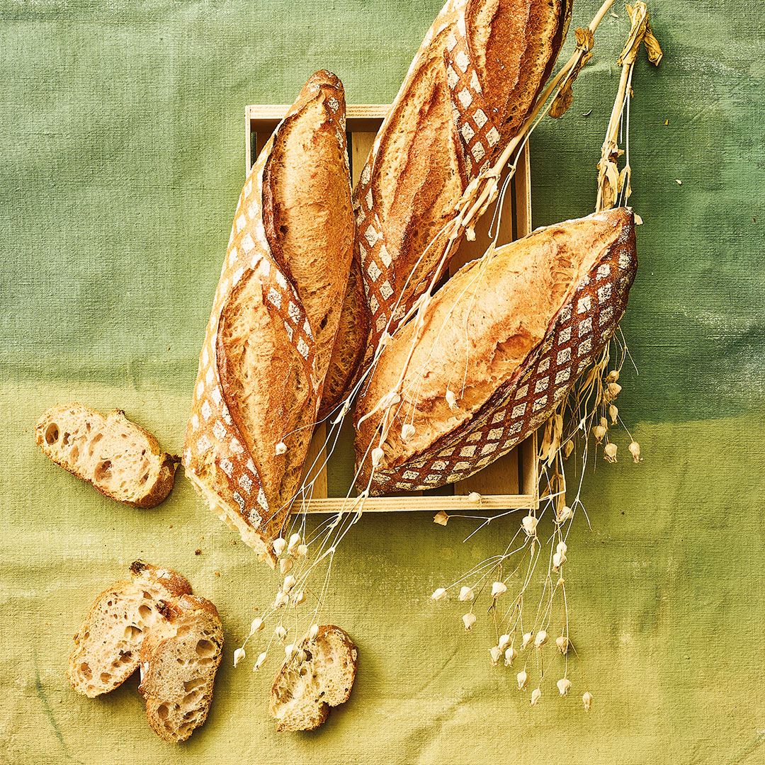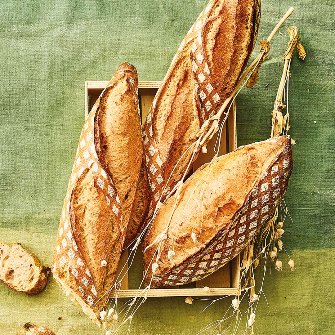 Les amateurs de bon pain seront comblés par ces pains généreux, à la croute dorée et crépitante, qui ne sont pas sans évoquer les pains rustiques d’antan que l’on appréciait pour leur longueur en bouche et le bonne conservation.