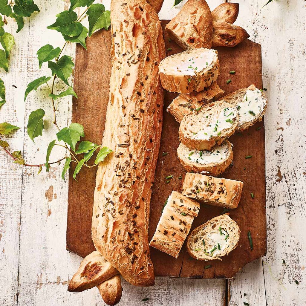 Fabriquée à partir du Festi Campagne, sa forme originale et son coeur fondant de fromage frais, ail et ciboulette peuvent être agrémentés de brisures de fruits secs ou de pincées du Mélange 6 graines pour apporter du croquant, et en faire la star des apéritifs ainsi que des pique-niques en famille ou entre amis.