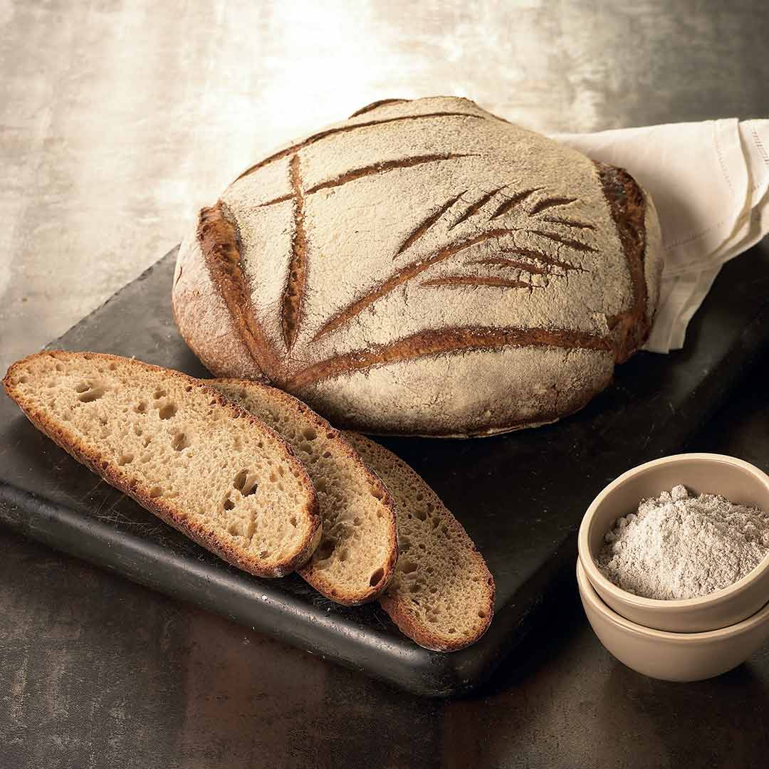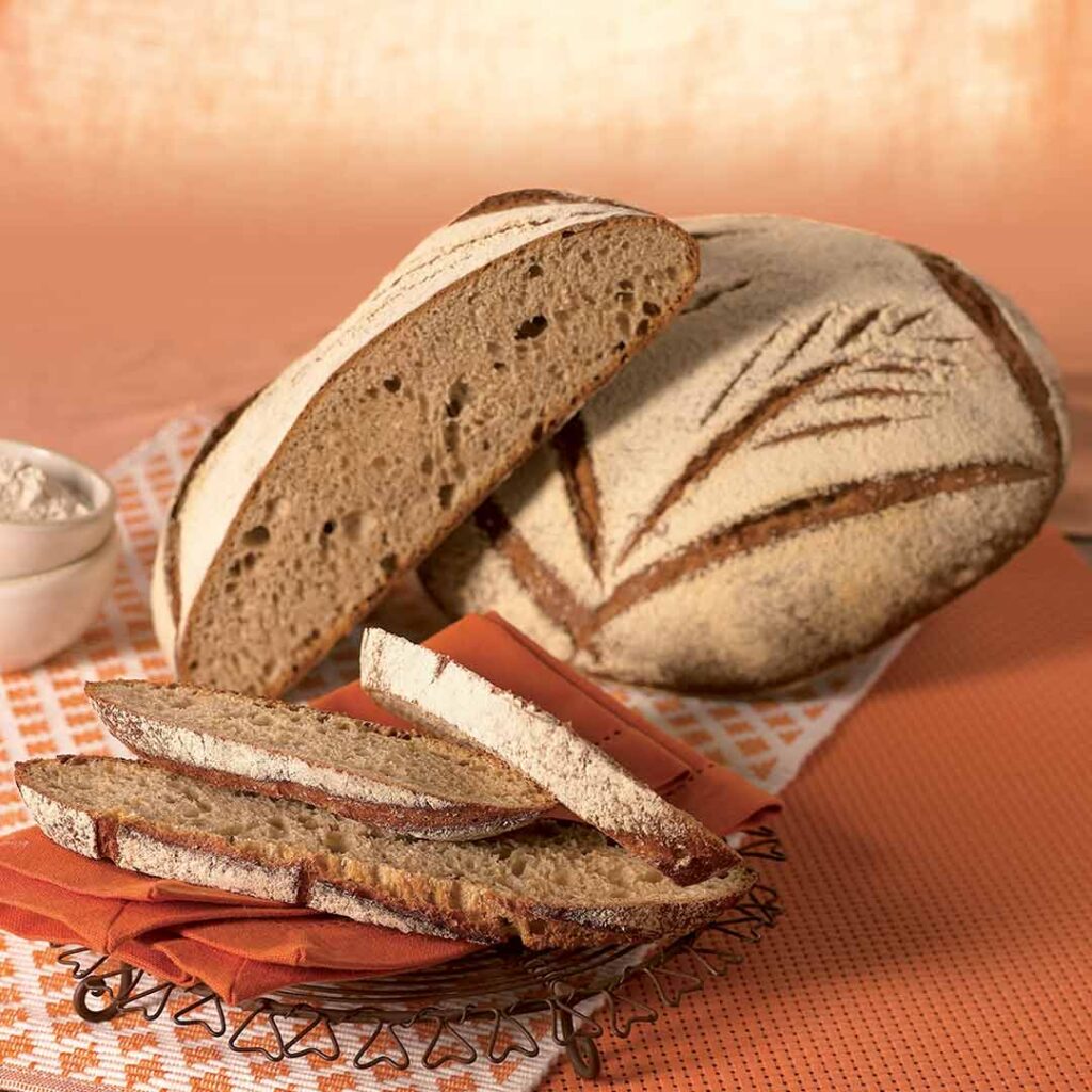 Cette tourte à la mie serrée, grise et moelleuse est un beau pain rustique invitant au partage. Idéale pour confectionner de savoureuses tartines.